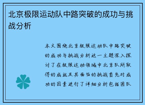 本文主要探讨广州街舞队的整体压制体系和街舞战术,旨在深入分析其独特的风格与策略。文章首先对广州街舞文化背景进行概述,接着从四个方面详细解析其压制体系的构建、战术运用、团队协作以及实践应用。通过对这四个...